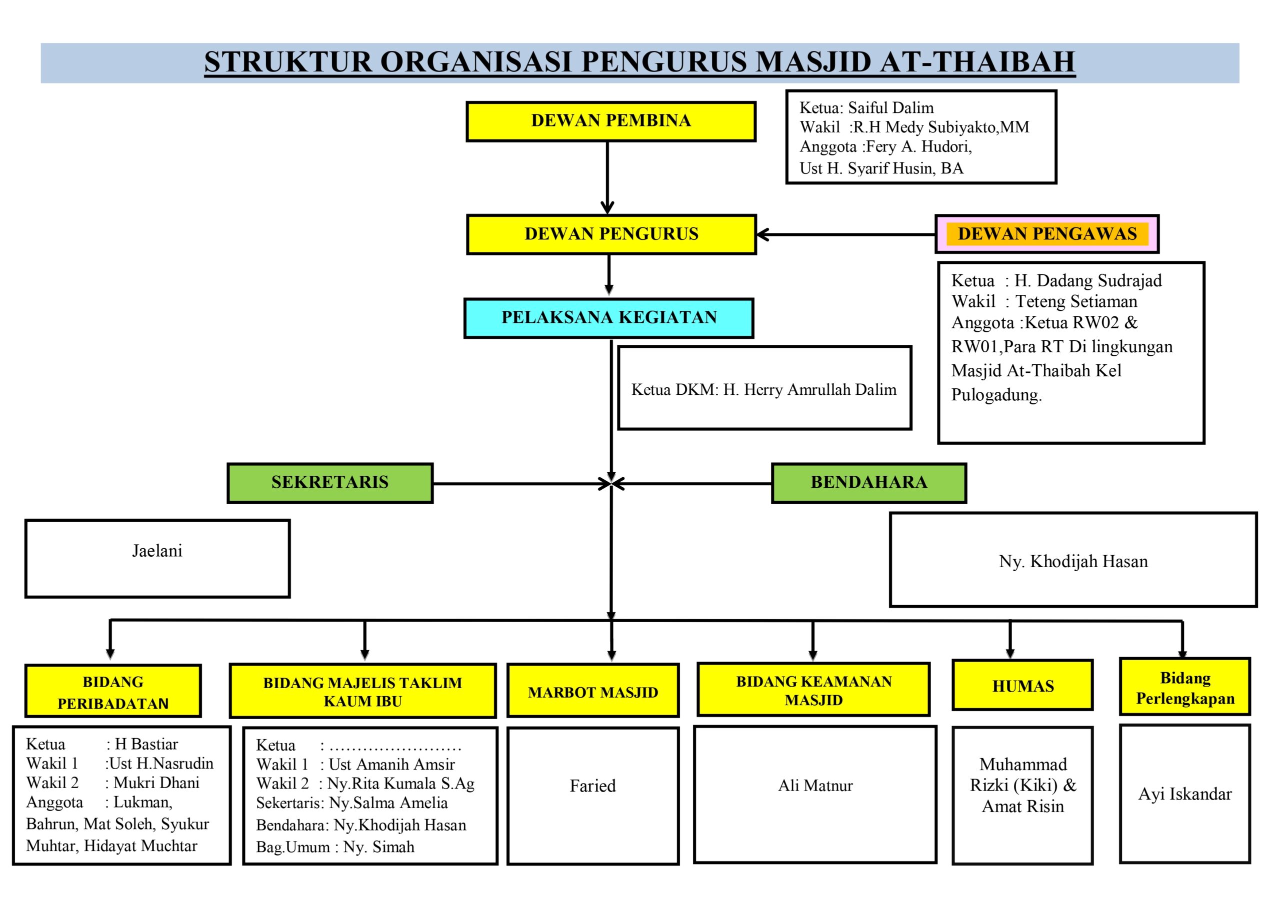 - Dewan Pembina terdiri dari Para Ahli Waris Masjid At Thaibah dan Tokoh Masyarakat.